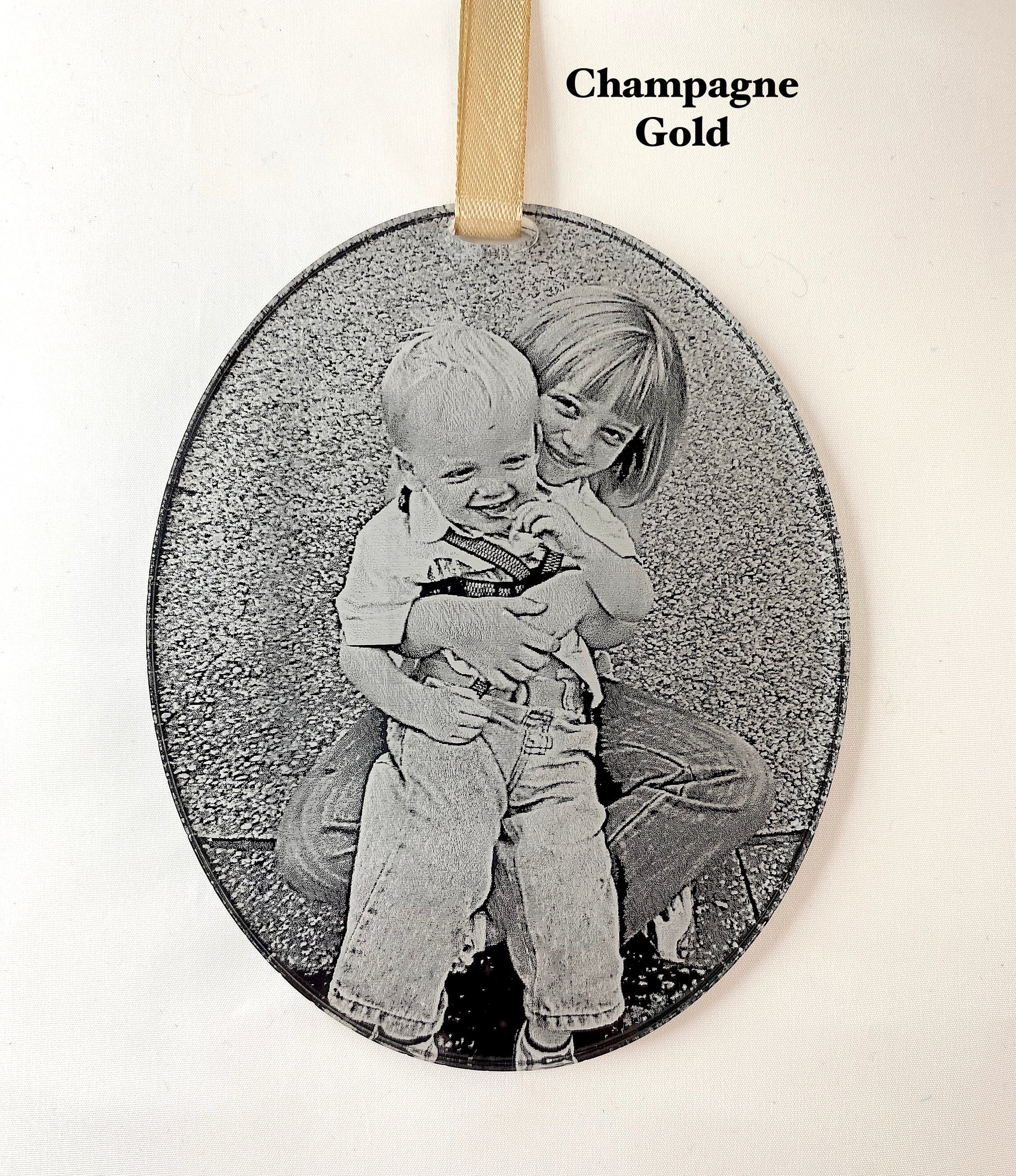 Your chosen photo is engraved directly onto premium clear acrylic with a black background and finished with a ribbon ready to hang on the tree or display.