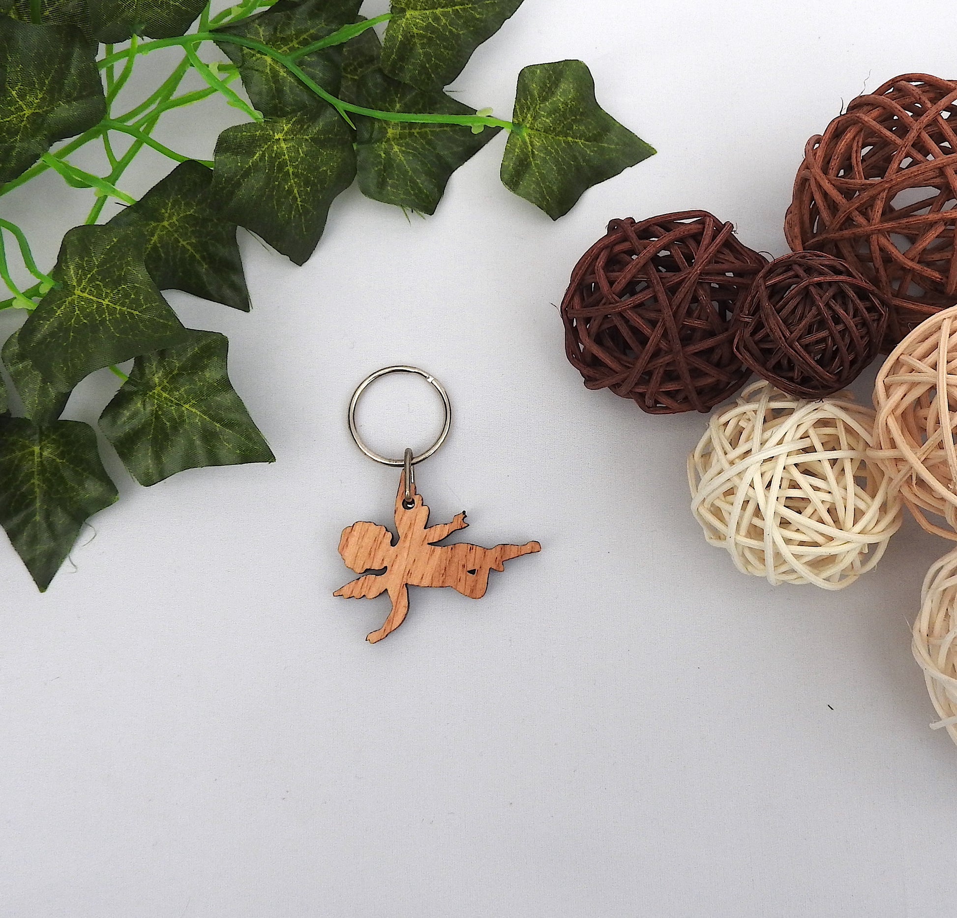 Wood Angel Keychain